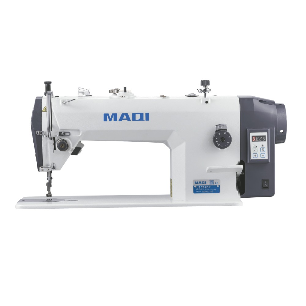 Máquina de costura recta con corte de hilo, motor electrónico integrado al cabezal, levantador de pie automático y nuevo panel de control (con opciones de remate inicial, final, puntadas continuas y programar un ciclo de costura de 2 pasos).